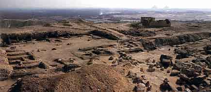 | Located some 8 kilometers to the North of Giza, Abu Rawash is the northern most site of the Memphite Necropolis. It got its modern day name from the nearby village Abu Rawash and appears to have been used as a burial site since the time of Aha, at the beginning of the 1st Dynasty. The Mortuary Complex of Djedefre The most important monument in this mountainous region, however, is the mortuary complex of Djedefre, successor of Kheops and third king of the 4th Dynasty. There has been a lot of speculation about Djedefre's motivation to build his funerary monument at Abu Rawash and not next to his father's at Giza. A very common view is that Djedefre chose this remote place to distance himself from the despotic reign of his father, whereas his brother Khefren, returned to Giza because he held the same views as Kheops. The fact that Djedefre built his pyramid away from his father's would thus be telltale of some dynastic fueds in the beginning of the 4th Dynasty. The fact that Mykerinos, son of Khefren, undertook some restoration work at Djedefre's funerary monument does not fit well with the romantic theory of dynastic fueds. It must be noted that during the early 4th Dynasty, there appears to have been a move towards the North for the royal funerary complex. Snofru moved from Meidum, where he at least completed or perhaps even built a pyramid, to Dashur where he built two pyramids. His son, Kheops, moved even further North, to Giza and Djedefre completed this move by building his pyramd in Abu Rawash. The motivation behind this move North is not clear, but it is still interesting to note. Recently, it has been proposed that Djedefre moved to Abu Rawash because it was situated opposite Heliopolis, the city of the solar cult. During the reign of Djedefre, the solar cult gained a lot in importance, as is shown by the addition of the title Son of Re to the royal titulary. This could at least explain Djedefre's choice of location, but it does not explain why Kheops moved to Giza. The structure of Djedefre's funerary monument is fairly